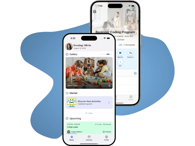 Our structured Check-in/Check-out (CICO) process uses digital verification (PIN and QR codes) for secure, real-time attendance and dismissal tracking. Staff use the Jumbula for Business app for management, which instantly connects to the My Jumbula Family App. Parents get real-time updates and access to crucial features like customizable authorized pickup lists. Keep families informed, confident, and secure on one simple platform.