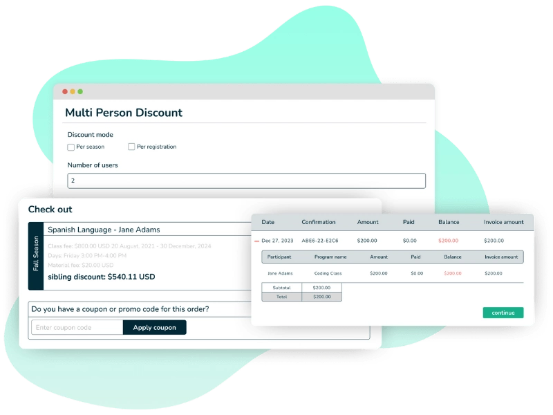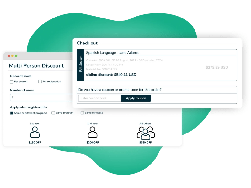 Quickly set up promotional offers to drive enrollment. Create custom coupon codes in minutes and define exactly how they work: choose a percentage or fixed discount, and set specific eligibility rules and expiration dates.