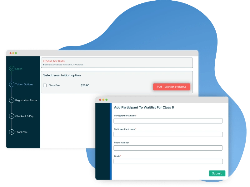 When a session reaches capacity, simply turn on the automatic waitlist. Our system instantly tracks waitlisted campers and ensures every available spot is filled the moment a cancellation occurs. This process eliminates the hassle of manual tracking, reduces administrative stress, and allows you to serve more families while ensuring quality instruction.